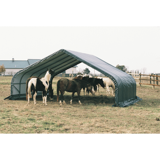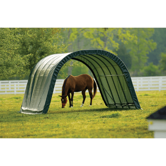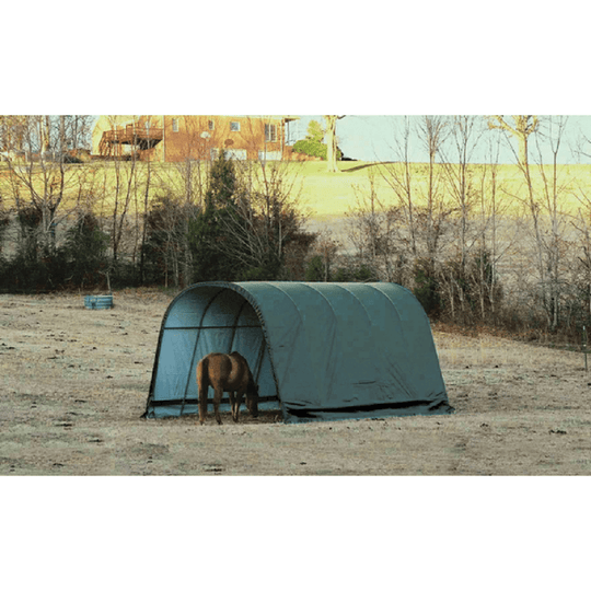 Green 12x20x10 Round Run-In Shelter Shed by ShelterLogic This 12x20x10 round-style run-in shelter by ShelterLogic is perfect for getting your livestock, horses, hay, or farming equipment out of the sun and into shelter and shade. The...Sale price $1,378.00Regular price $1,590.00Sale price $1,378.00Regular price $1,590.00 -